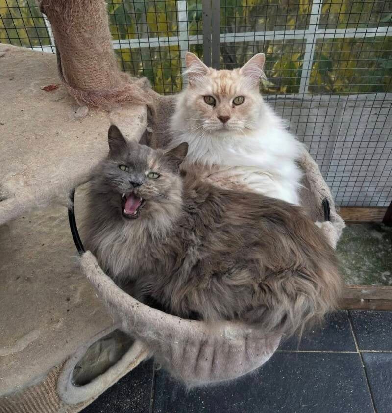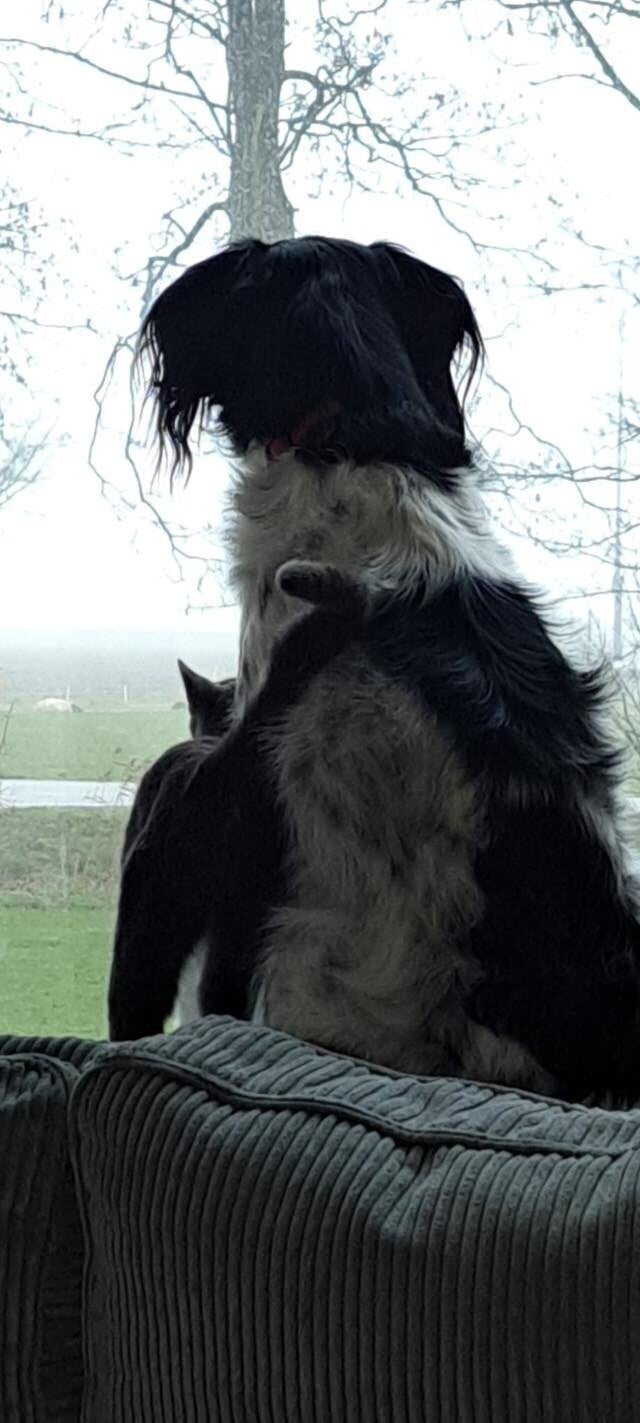 Tom kregen we vier jaar geleden als puppy en een jaar later kwam Jerry erbij als kitten. Vanaf het begin zijn ze al dikke maatjes en eigenlijk altijd samen te vinden, of ze nu aan het spelen zijn, liggen te slapen of samen kattenkwaad uithalen.